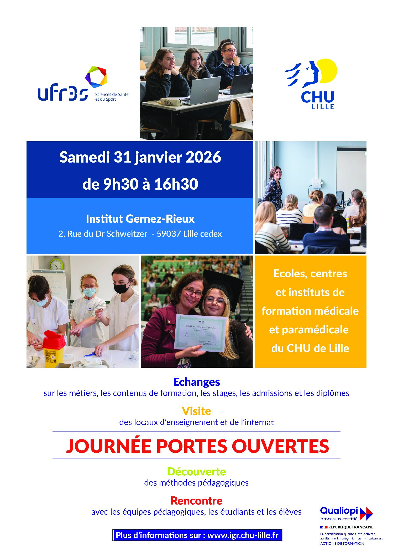 Journée Portes Ouvertes des écoles, centres et instituts du CHU de Lille, le 31 janvier 2026 de 9h30 à 16h30